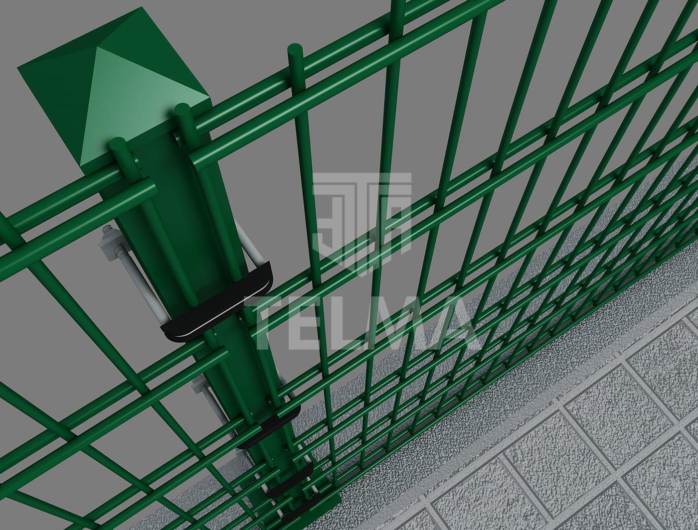 • Beton zeminde, direklerin altına 125x125x5,00 mm flanş kaynatılır. 50x50x1,50 mm veya 60x60x1,50 mm direkler, 4 adet çelik dübel kullanılarak 2,50 m aralıklarla monte edilir.